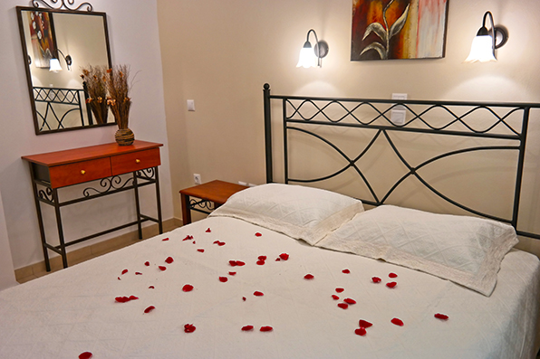 1 bedroom with double bed, 1 bedroom with two twin beds, kichen where one extra bed may be added. TV, AC, and sea view balcony.
